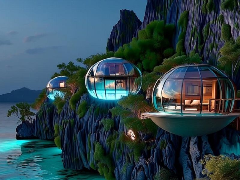Nằm cheo leo trên những vách đá vôi nhìn ra vùng nước xanh ngọc lam của Vịnh Bacuit, những kén kén hình cầu này hòa quyện kiến trúc, cảnh quan và cảm xúc, tạo nên một tổng thể cân bằng và hài hòa. Tầm nhìn của Tập đoàn Pouyesh về Spherical Cocoon Havens tại El Nido, Palawan, đã định nghĩa lại ý nghĩa của việc sống hòa mình vào thiên nhiên thay vì sống bên cạnh nó. Lớp vỏ kính cong và lớp vỏ kim loại phản chiếu xóa nhòa ranh giới giữa kiến trúc và bầu trời, đại dương và sự phản chiếu, cho phép kiến trúc hòa quyện vào khung cảnh thay vì lấn át nó.
